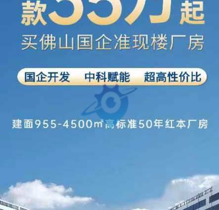 狮山最具性价比?最低入驻门槛项目 中科院资源对接?助力企业商业发展 国企开发?首付两成?独立产权?无税收要求 —————————————————————— 项目概况 【项目位置】佛北战新产业园“南海片”核心制造业集聚区内 【项目定位】大湾区战略性新兴制造业高地 【土地性质】50年产权国土红本,M1工业用地 【占地/建筑面积】约54.9亩,建面约11万㎡ 【产品类型】5栋7层和1栋8层厂房 【交易方式】首付最低2成(可十年分期) —————————————————————— 产品概况 【面积】741-4500㎡多功能空间 【层高】1F:7.9m,楼上4.8-5.9米 【货梯】5T货梯,10T汽车电梯 【承重】1F:5T/㎡,楼上1-1.5T/㎡ 【柱距】9*9m,最长产线100m 【卸货平台及吊装口】预留卸货平台及吊装