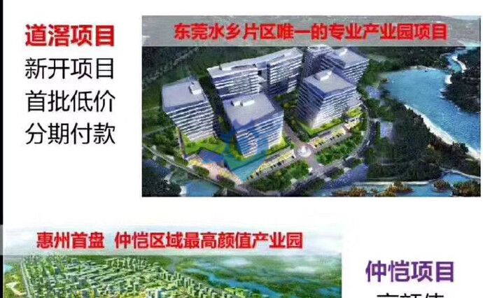 八大项目总有一个适合您[奸笑] 深圳、东莞,惠州、佛山高端产业园区,欢迎入住,50年红本产权,可首付3-5成,按揭十年。有独栋及分层出售,适合自用及投资! 300-500-800-1200,2000,5000平方等面积分割出售。 (常平项目、厚街项目、凤岗项目,惠州项目,佛山顺德项目,道滘项目,杏坛项目,容桂项目)