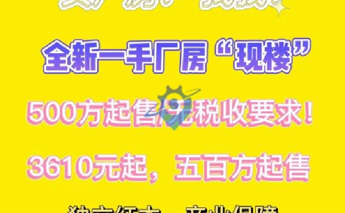 全新厂房300起售,价格2980起 红本50年,一手厂房现楼 行业不限,证件齐全 独立红本,产业保障