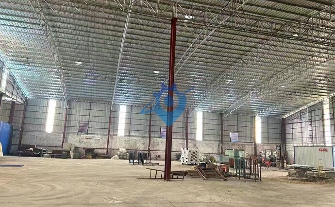禅城区南庄镇全新单一层钢结构厂房总面积:3850方 【车间1】:1450方 【车间2】:2400方 【配电】:150KW(可增) [發]全新单一层钢结构厂房滴水9米,中高11米,两个独院,空地大,现成水电,进场既可生产,托头车进出方便,交通位置方便,易招工。适合:仓库物流、五金加工、板式家具、岩板加工、门窗等各行业。